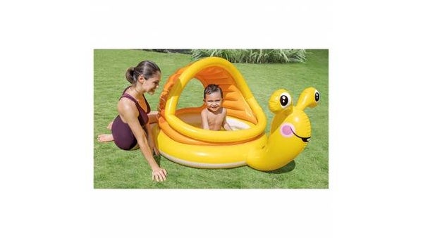 Deze Intex Lazy Snail Shade Baby Pool gaat net iets verder dan een standaard baby zwembad.