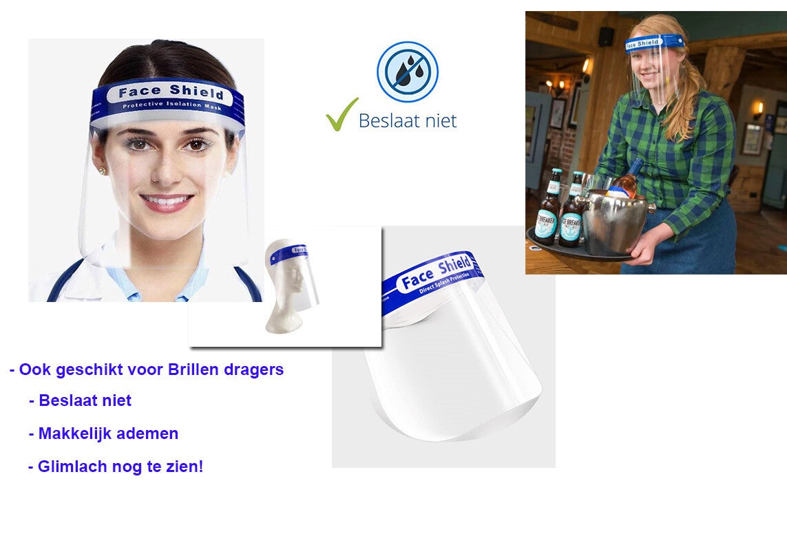 Gelaatsmasker | Gezichtsscherm | Spatscherm | Face Shield Protective Mask - 4 stuks - Geschikt voor Brillendrager - Beslaat niet - Gezichstuitdrukkingen + Glimlach is goed te zien!